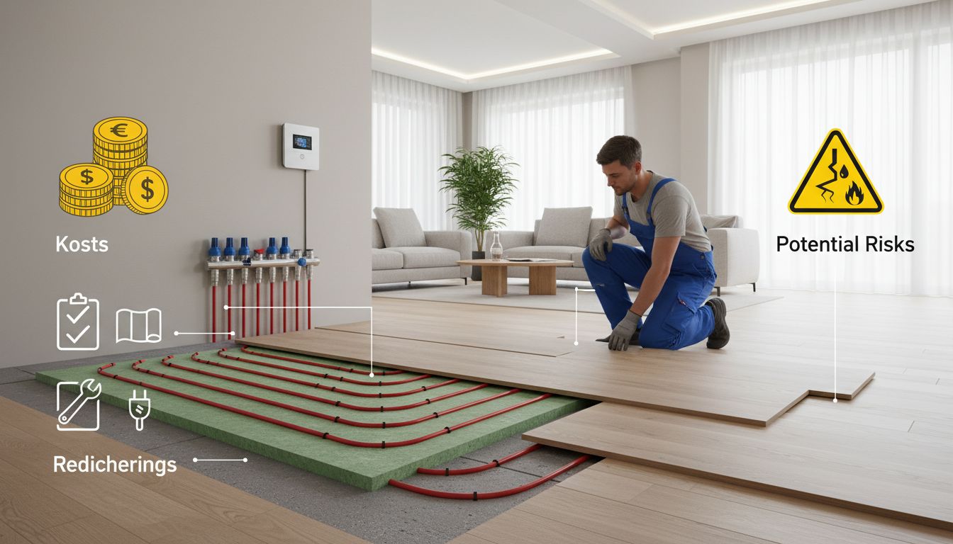 Neben der reinen Heizfläche fallen weitere Kosten an. Heizungsrohre müssen neu verlegt werden. Alte Heizkörper werden demontiert und entsorgt. Oft muss auch der vorhandene Boden entfernt werden. Diese Arbeiten erhöhen den Gesamtpreis deutlich. Auch Anpassungen an Türen oder Treppen können nötig sein.