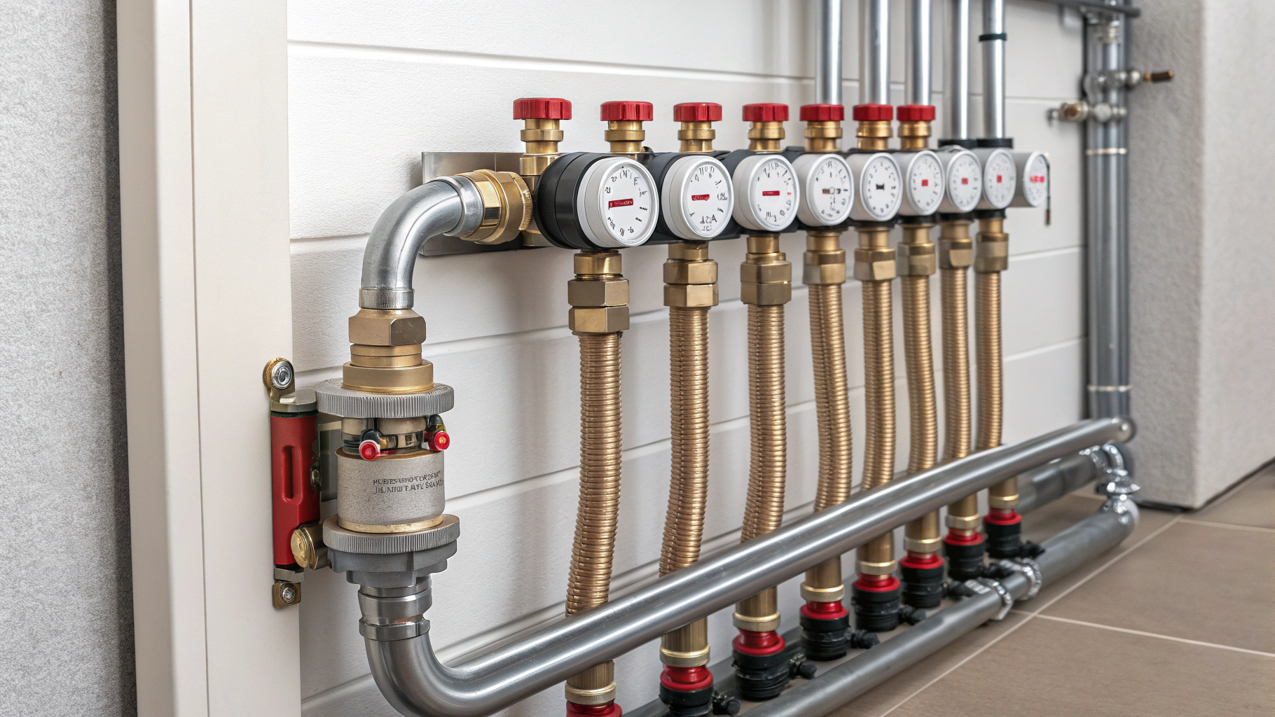 Ein Heizkreisverteiler bildet die zentrale Sammelstelle aller Rohrleitungen der Fußbodenheizung. Hier treffen bis zu zwölf Heizkreise zusammen, die jeweils in Vor- und Rücklauf gegliedert sind. Der Vorlauf transportiert warmes Wasser vom Heizsystem in die Heizflächen, während der Rücklauf das abgekühlte Wasser zurückführt.